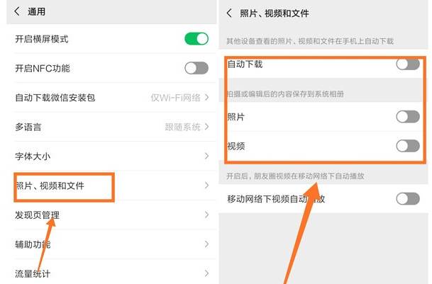 关闭方法:微信——照片、视频和文件——将“自动下载”、“照片”和“视频”三个选项关闭。