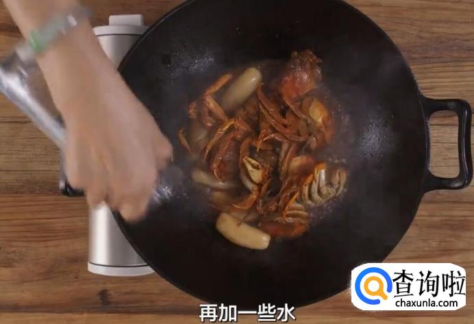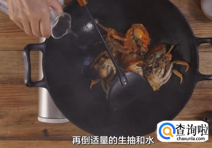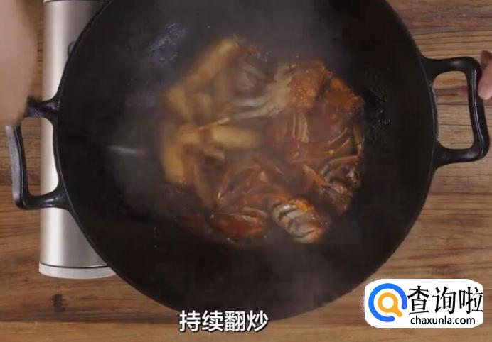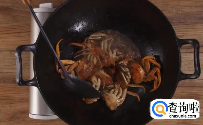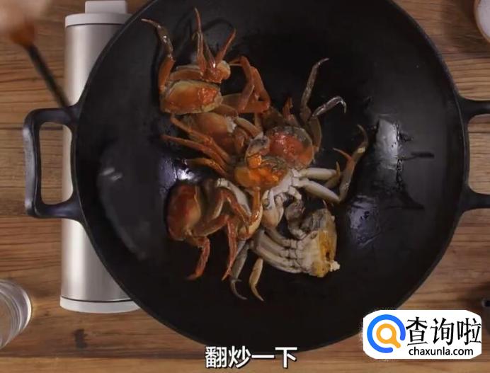 捞出姜片后,放入螃蟹翻炒。