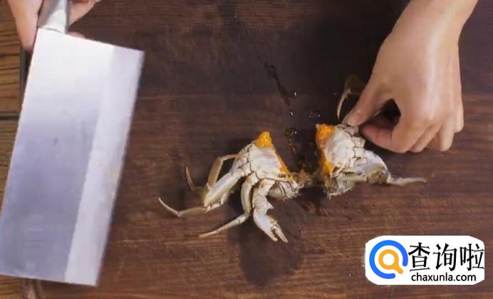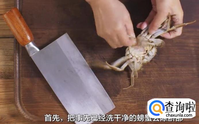 首先,把事先洗干净的螃蟹去除脐部。