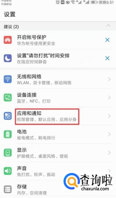 弹出的界面,我们点击应用和通知;