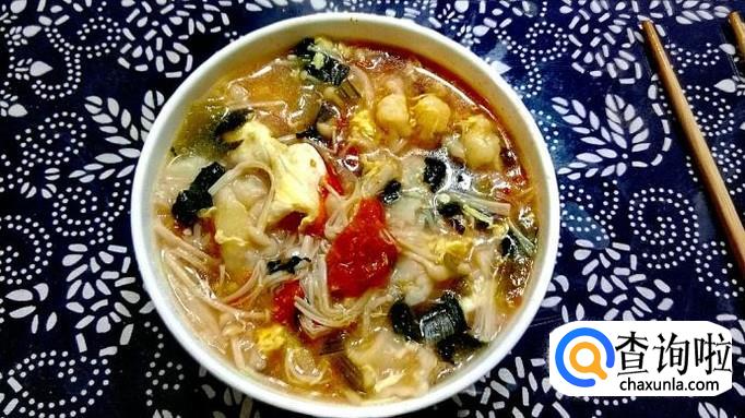 最后在关火前,加入适量盐、胡椒粉搅匀,煮一分钟关火,喜欢吃香油的可以淋入香油,盛碗上桌,色香味俱全的蔬菜疙瘩汤就做好了。