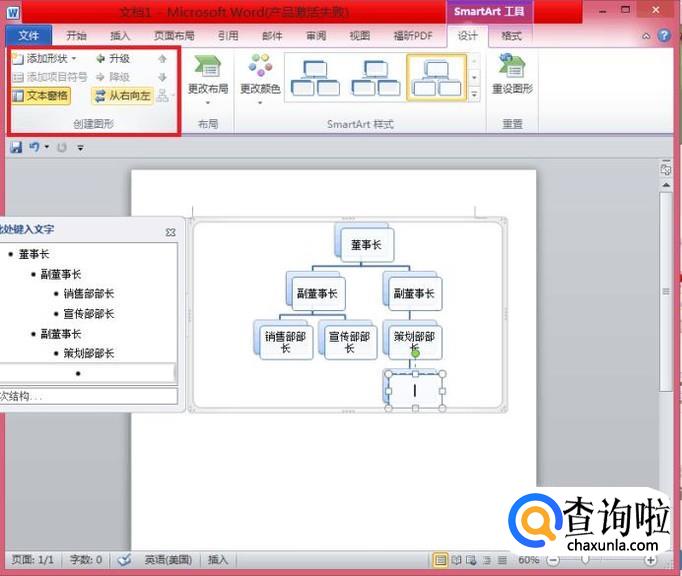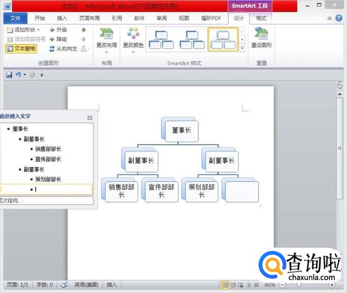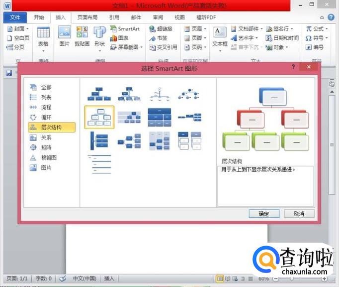 找到合适的组织结构关系图(我们以”层次结构“为例)