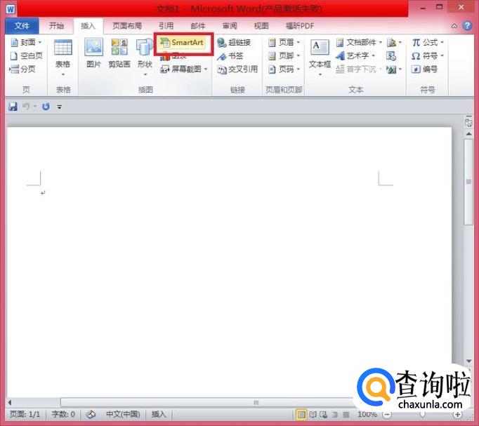 打开”插入“选项卡,找到里面的SmartArt,并单击