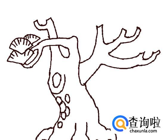 最后在右侧支杆的叶脉纹理,你看这颗树就画好了。