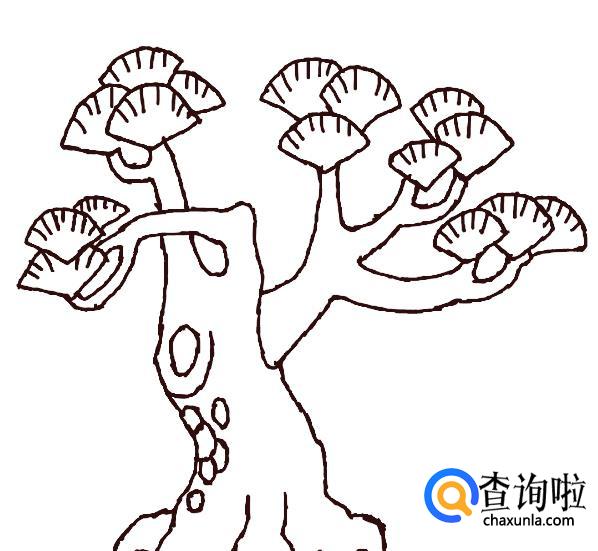 再画出上方银杏树叶子及叶脉纹理,画的好看一点哦。
