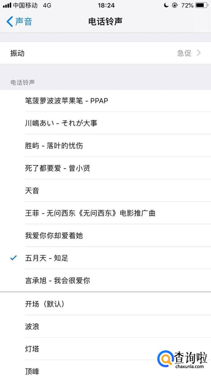 最后在我们的手机电话铃声界面选择这首歌曲就可以了。