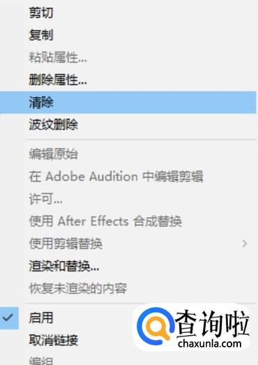 选中要剔除的片段,点击鼠标右键。选择“清除”。
