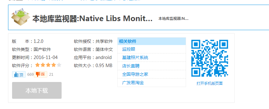 安卓手机打开.so文件需要下载Native Libs Monitor这个app,这个应用可以帮助我们理解手机上安装的APK用到了哪些.so文件,以及.so文件来源于哪些函数库或者框架。我们也可以自己对app反编译来获取这些信息。