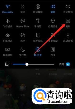 向下滑动手机屏幕,调出导航栏,在导航栏里点击“截屏”,就可以将图截下来了。