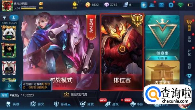 然后点击排位赛,如下图所示。