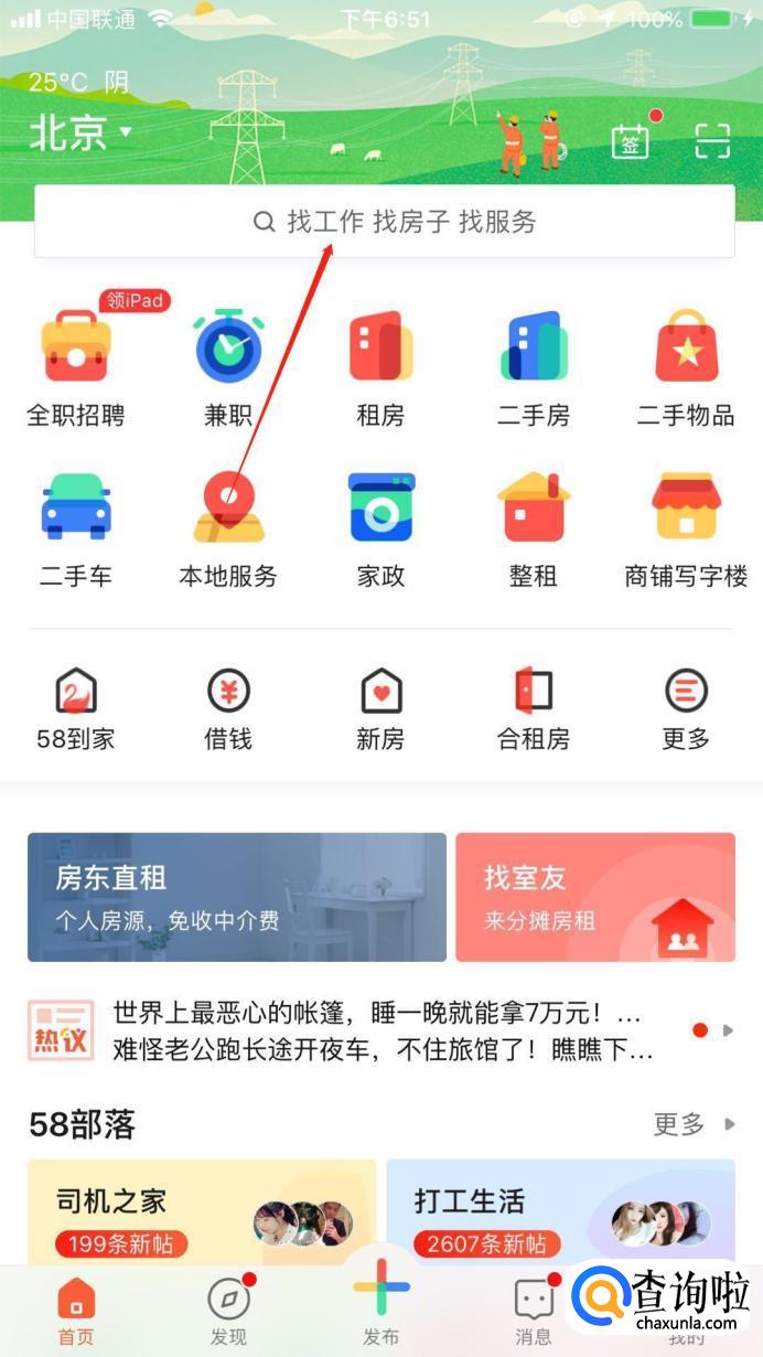 首先,下载“58同城”app,在手机中打开软件。