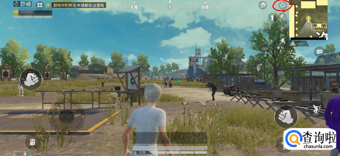 然后进入训练场。试一下灵敏度,看看手感好不好。若是可以就可以了,若手感不好,点击设置图标,进入灵敏度设置界面,继续调试,直到调成手感最好的数值。