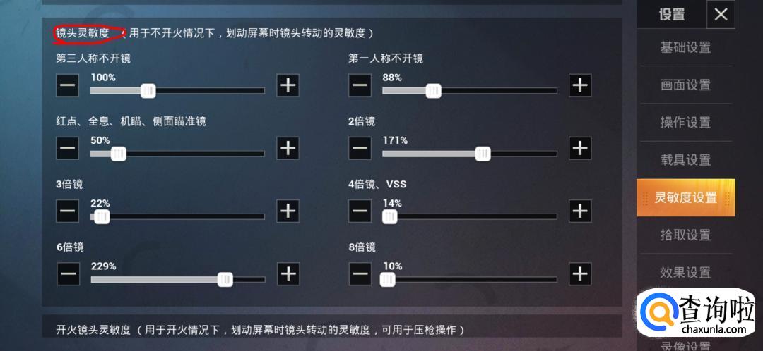 镜头灵敏度3倍镜和6倍镜灵敏度设置为25%,15%,如图,