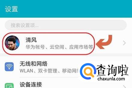 我们首先在桌面上点击“设置”,然后即可在设置页面的最上方看到自己当初新买手机时候注册的华为账号了;