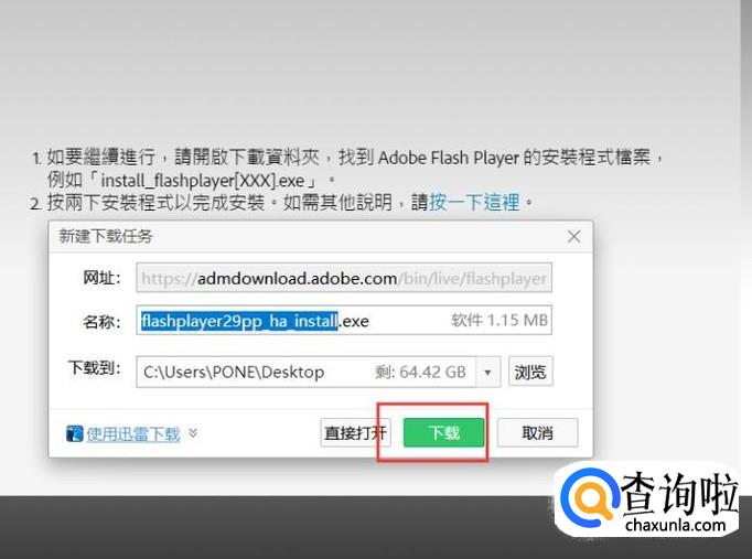 接下来,网页将自动弹出下载器,点击“下载”按钮。