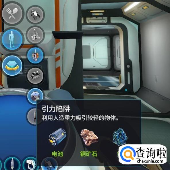 我们用两个酸性蘑菇,跟一个铜矿石合成一个引力陷阱。