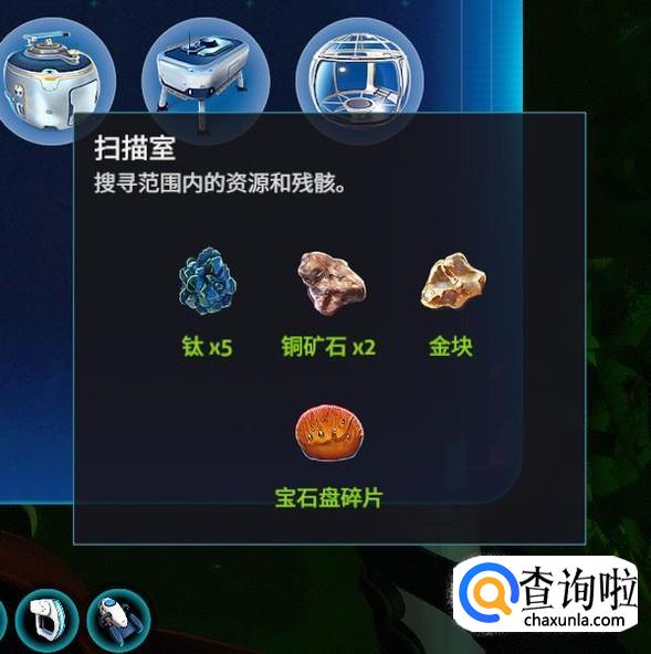 然后我们用5个鈦元素,2个铜矿石,一个金块,一个宝石珊瑚碎片合成一个扫描室。