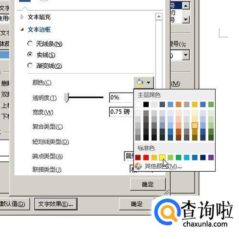 比如,再设置文字的描边为黄色;那么,鼠标再点开文本边框,再点实线,
