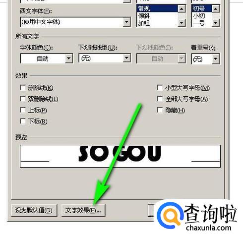 在字体对话框的底部这里,再点击:文字效果