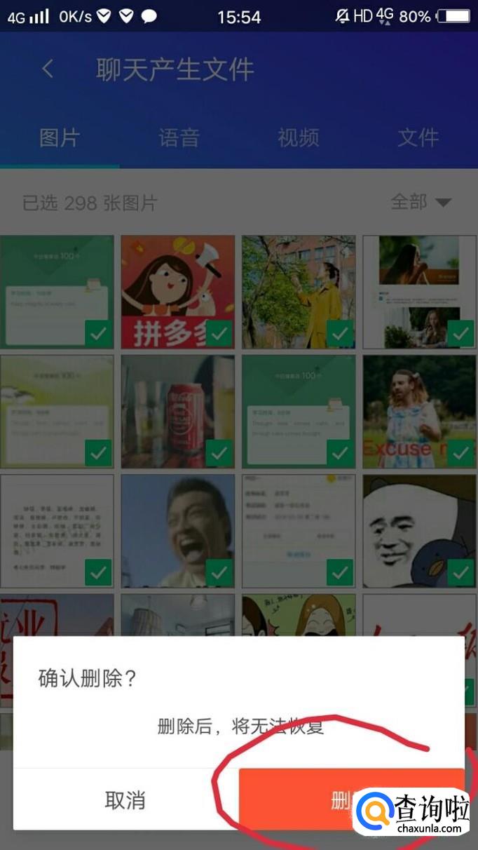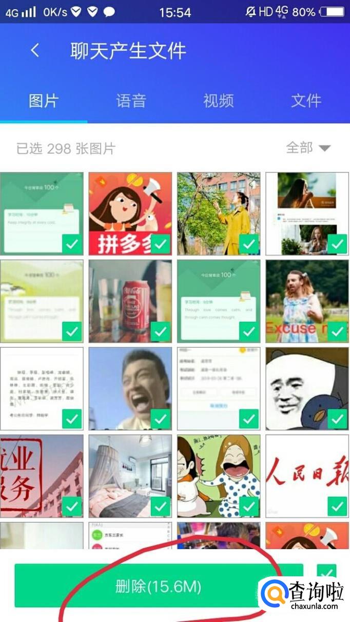 这样就会显示你近期缓存的一些图片文件,点击右下角的全选,然后点击删除文件。