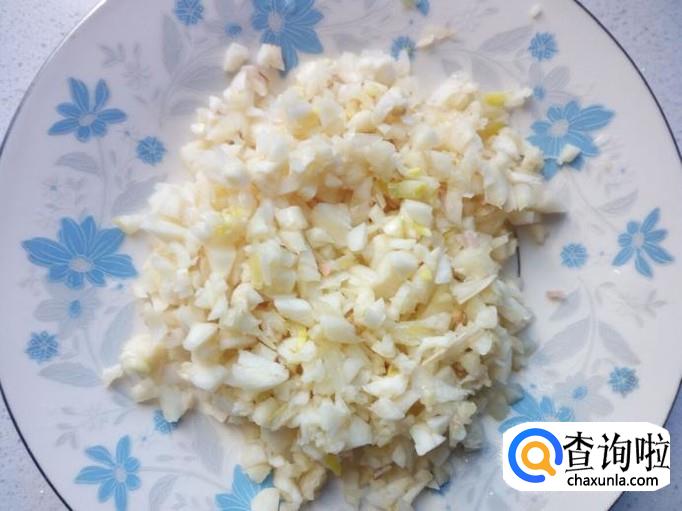 大蒜剥去皮,用水清洗干净,控干水分,切成末。