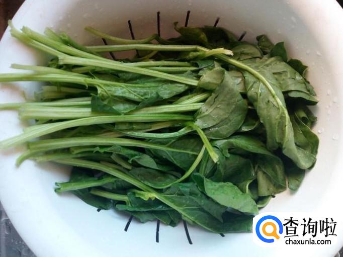 菠菜去根,用水清洗干净,控干水分(一定要把水分控干)。
