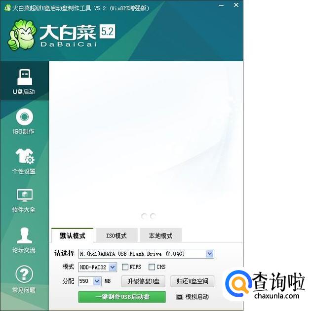 现在使用U盘启动盘安装系统成为一种常用手段,下面我以大白菜U盘启动盘制作工具为例来说一下怎样制作启动盘。