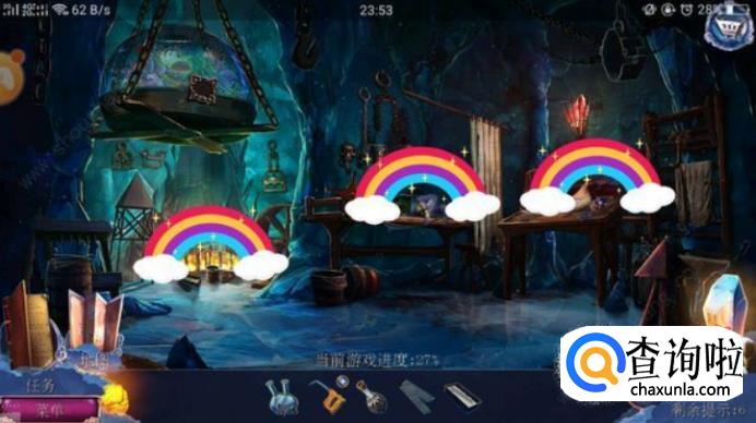 右边游戏 窗户得到布 和剑组合 用铁链勾窗外的盒子 再用火把得到锤子