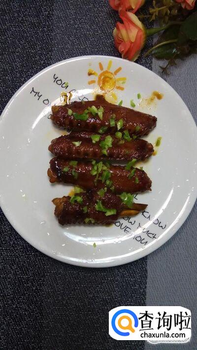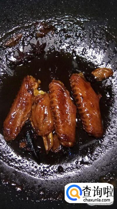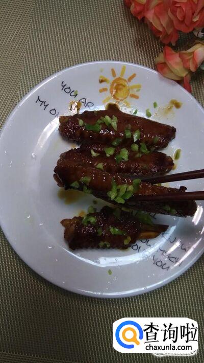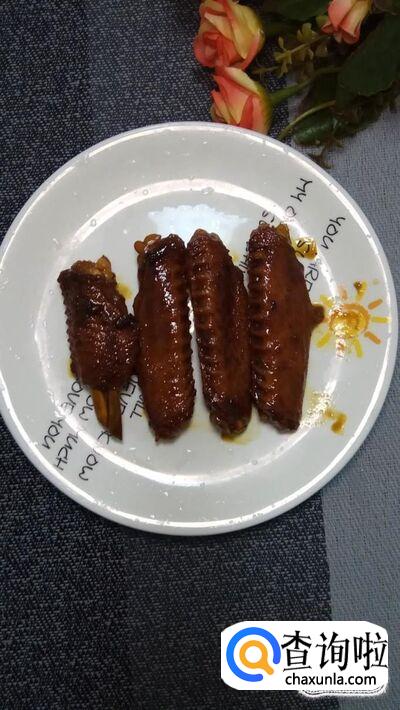 盖上锅盖,大概炖30分钟左右,汤汁收干后,将鸭翅盛出来,放入盘中。