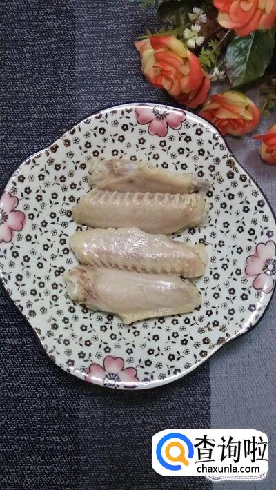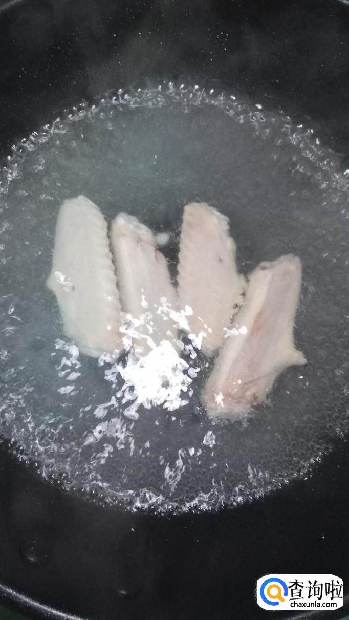 将鸭翅洗净后,放入锅中焯水,撇去血沫,盛出放入盘中备用。
