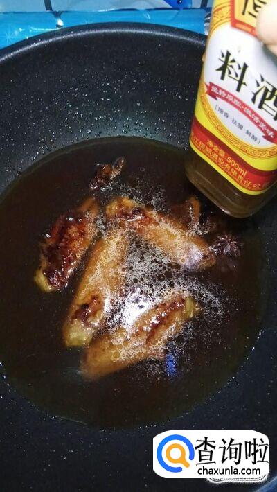 加入适量清水,清水的量要没过鸭翅,然后放入适量料酒,加入适量盐,盐的量不要太多,收干汤汁之后,盐就会浸入鸭翅中了。