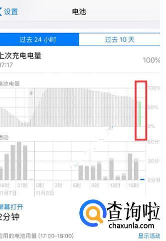 然后我们点击柱状图的最后一根柱线,所看到的就是我们手机当前电池电量的百分比了,如图所示:
