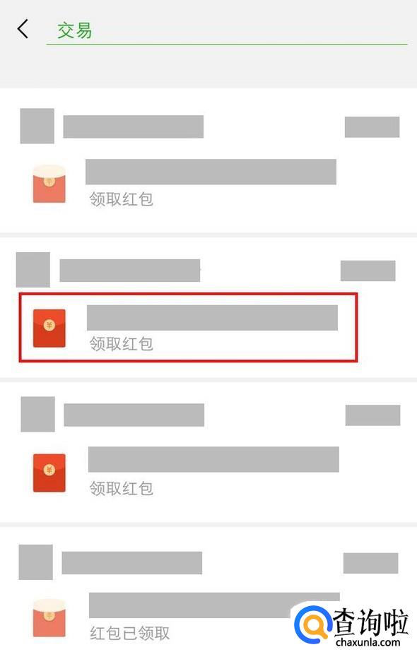 点击交易后,就会弹出有资金来往的消息,包括红包和转账,未领取的红包显示“领取红包”,已经领取的显示“红包已领取”;