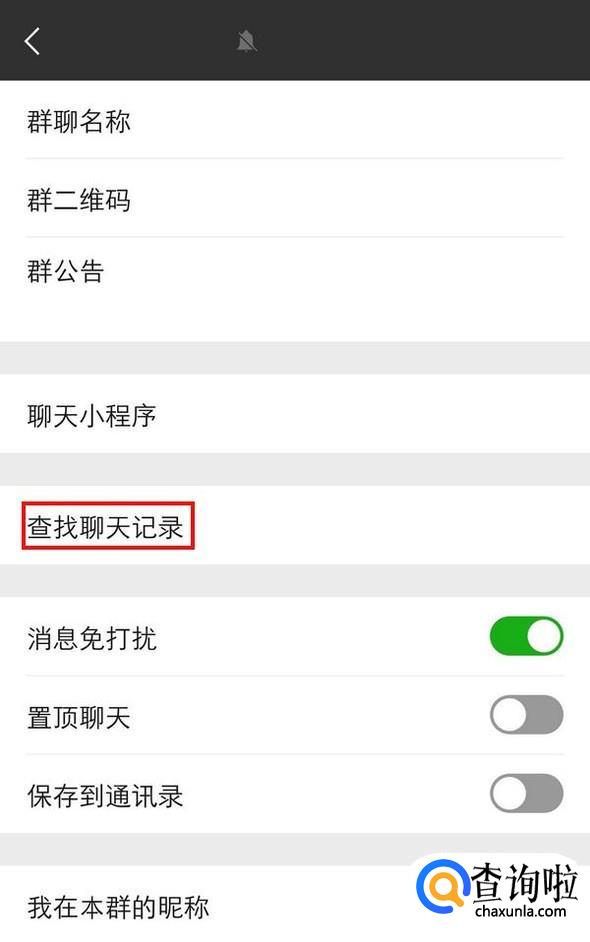 在跳转的列表页面中找到“查找聊天记录”,会跳到搜索页;