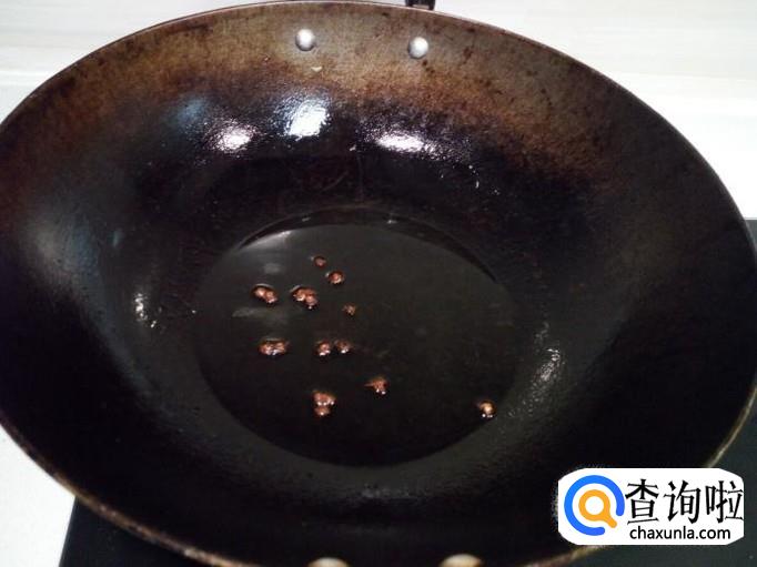锅内放入油加热,油热后放入花椒爆锅,放入肉片翻炒。
