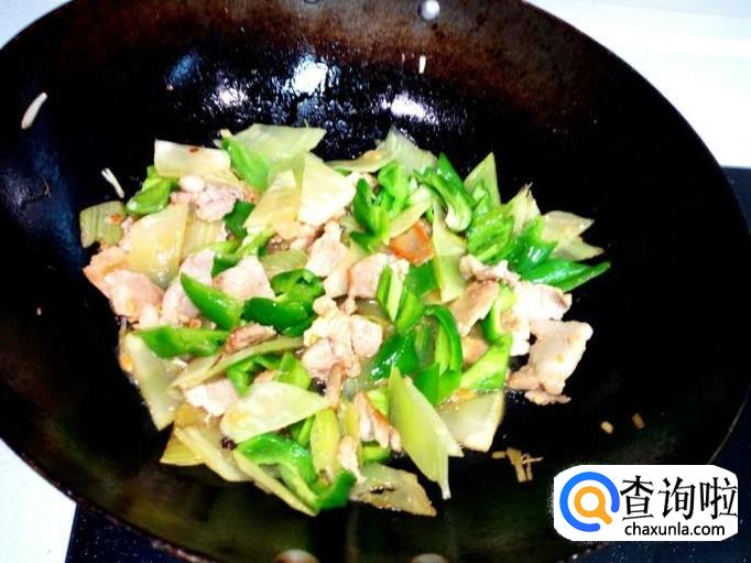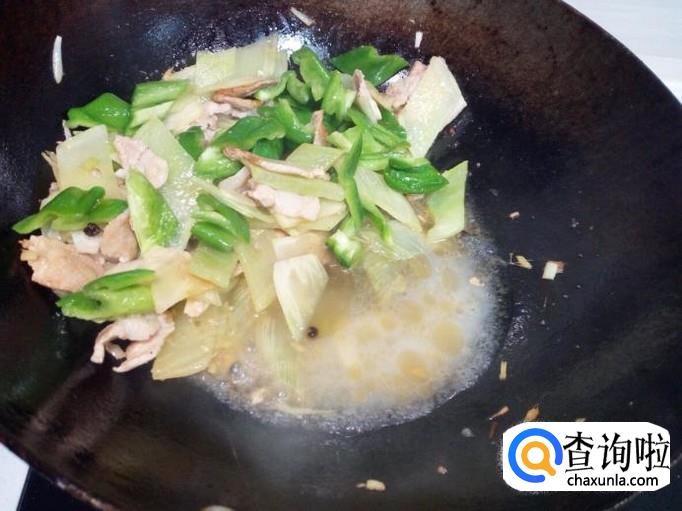 青椒颠勺翻两下个,然后放入勾兑好的薄欠,芡汁粘稠后,放入味精,关火出勺。