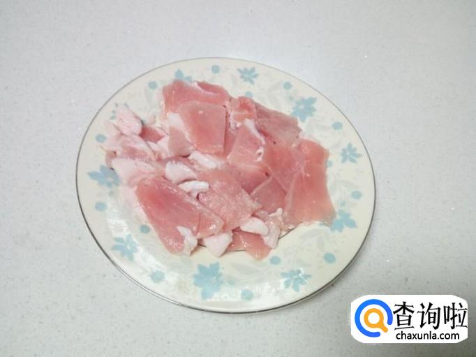 猪肉用水清洗一下,控干水分,切成薄片。