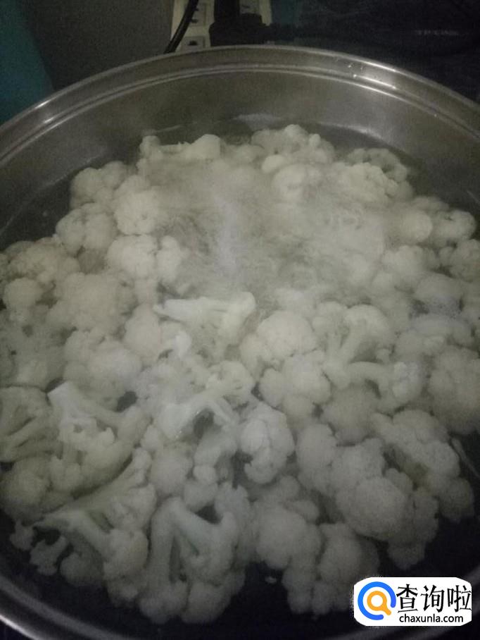 锅里放水烧开,倒入菜花,焯一下。
