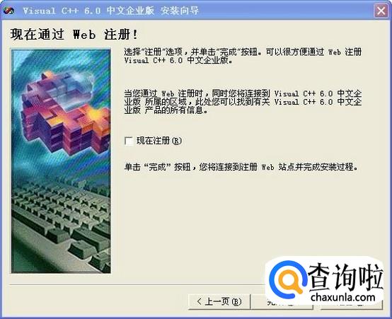 安装进度条走满,可以选择提勾是否现在登录,点击完成即可完成VC++ 6.0的安装。
