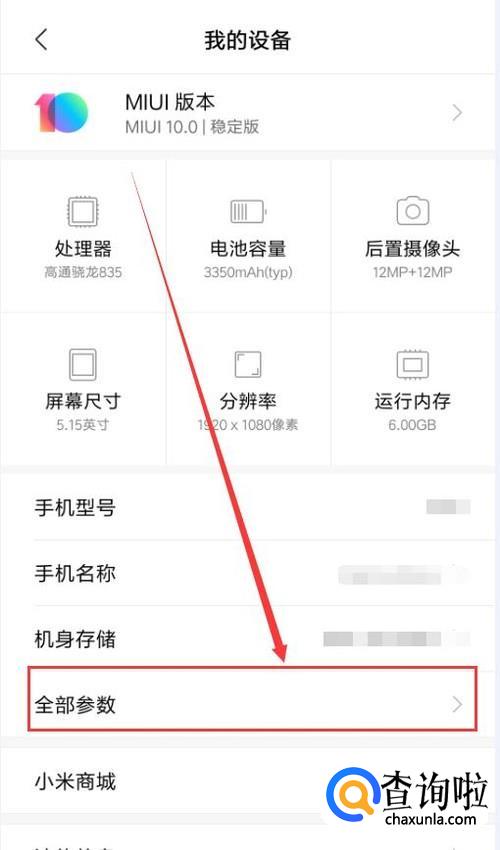 在“我的设备”界面。点击下方“全部参数”。