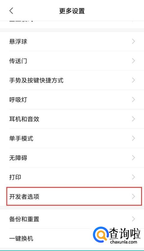 进入开发者模式后,回到“设置”主界面,点击进入“更多设置”。