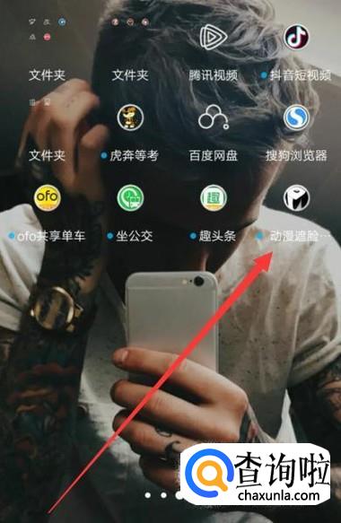 打开手机,找到动漫遮脸相机,点击并进入,如图所示。