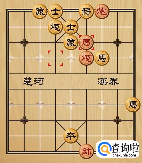 红方走马二进四利用炮将军,而红方的马又被另一个炮看住,黑方无路可走,红方胜利。
