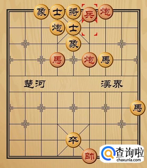 红方先走一步兵四进一并形成兵和炮双将军的棋局。