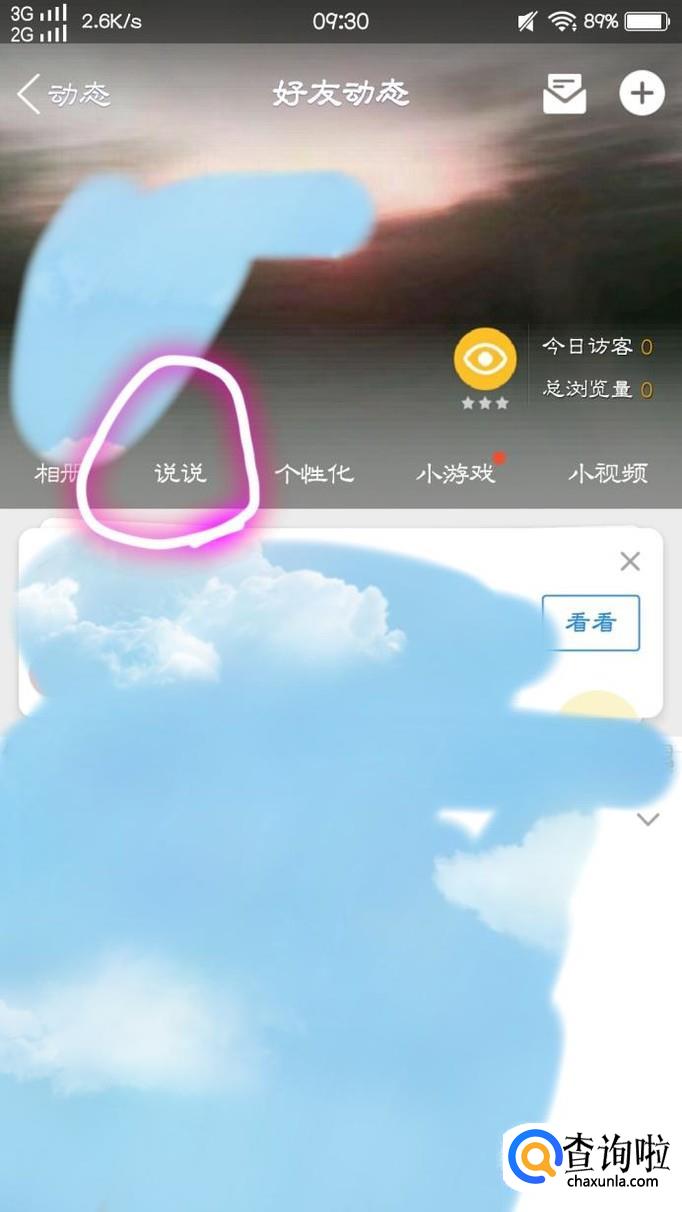 紧接着,点击进入“好友动态”以后,点击自己头像下方的“说说”