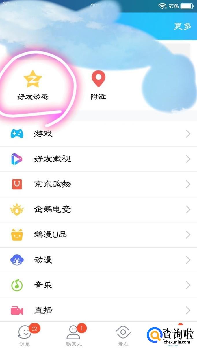 接下来,大家登录好自己的账号以后,点击到“动态”专区,并点击左上角的“好友动态”