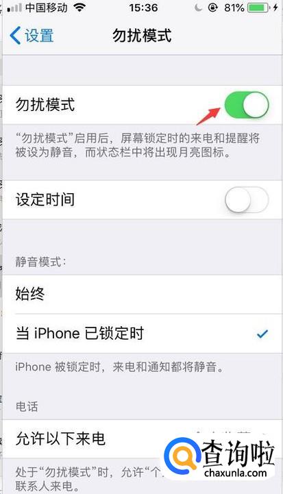 接着在设置功能里面往下拉,会看到勿扰模式的选项。