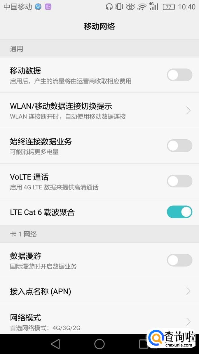 里面就是无线和网络设置的选项,我们点击移动网络。