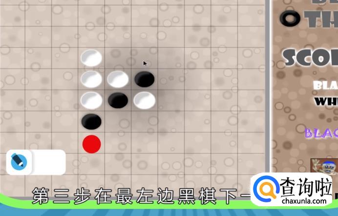 接着在最下方黑棋的下面第一格处,布棋。