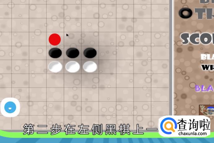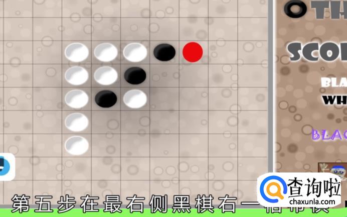 在右边的黑棋的上方第一格处,布棋。